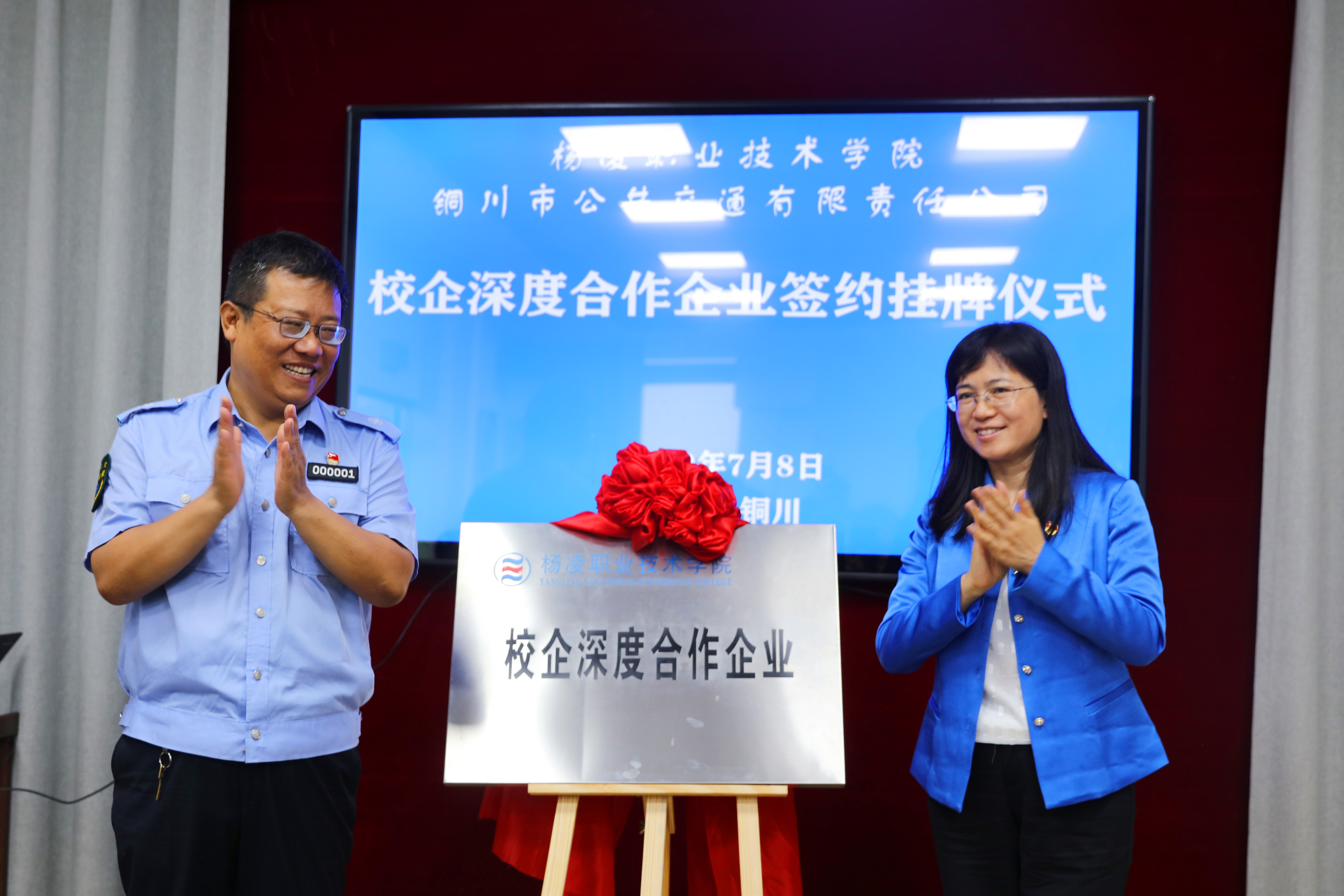 仪式上,陈宁、司宝君共同为“杨凌职业技术学院校企深度合作企业”揭牌。交通与测绘工程分院院长张养安、铜川市公共交通有限责任公司副总经理王群燕代表双方签订了校企深度合作协议。