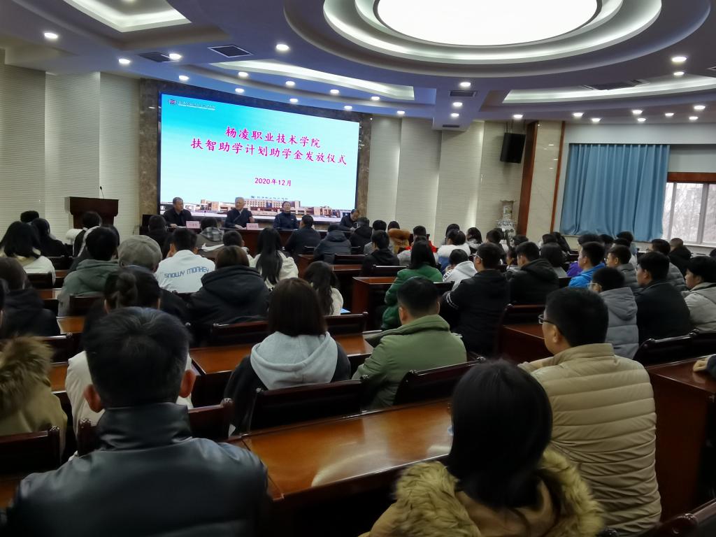 12月4日下午,“杨凌职院扶智助学计划”助学金发放仪式在水韵楼二楼报告厅举行。杨凌示范区慈善协会会长刘怀省、副会长张建斌,校党委副书记任得元、工会主席王秉信,以及84名受助学生等参加了仪式活动。