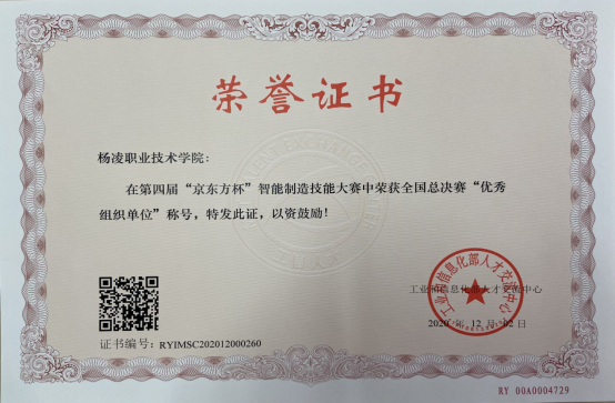 12月11日,由工业和信息化部人才交流中心和京东方科技集团股份有限公司主办,北京智芯国信科技有限公司承办的第四届“京东方杯”智能制造技能大赛落下帷幕,我校荣获二等奖1项、三等奖3项,并获大赛优秀组织奖。
