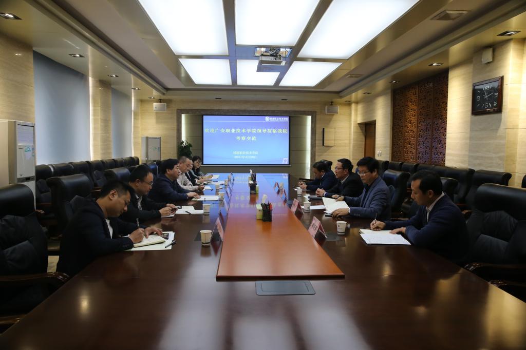 4月28日,广安职业技术学院党委委员、副校长张晓峰一行6人来我校考察交流。我校党委副书记任得元,副校长祝战斌,党委组织部、统战部部长田争运,党委宣传部部长裴红波接待了张晓峰一行,并与其座谈交流。