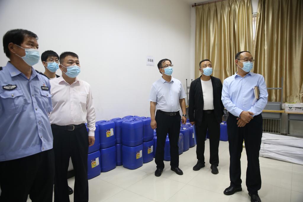检查组先后来到南校区门卫安保室、视频监控室、防疫物资储备室和学生食堂、公寓等重点场所,对校园安全及疫情防控工作进行实地检查,并认真查阅了相关疫情防控资料,听取了学校关于制定和落实疫情防控相关措施情况的汇报。
