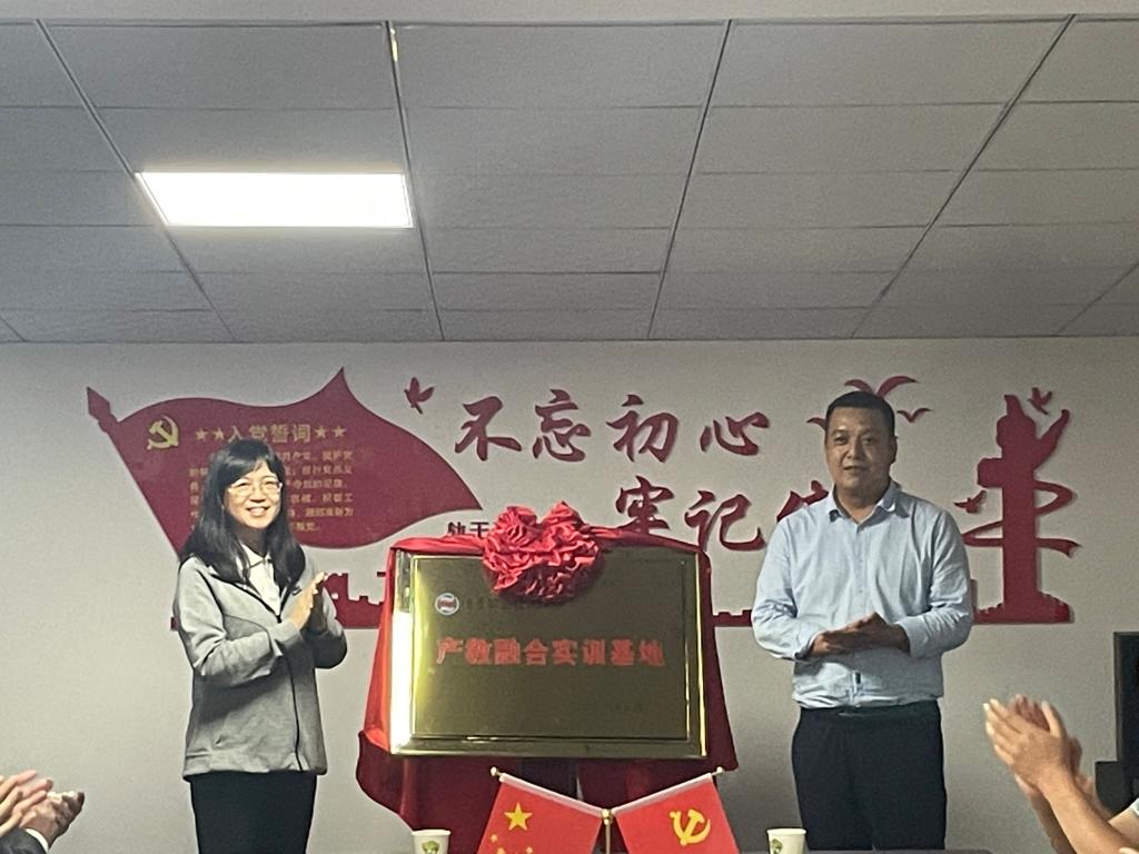 陈宁与锦田合作社董事长李海平共同为“产教融合实训基地”揭牌