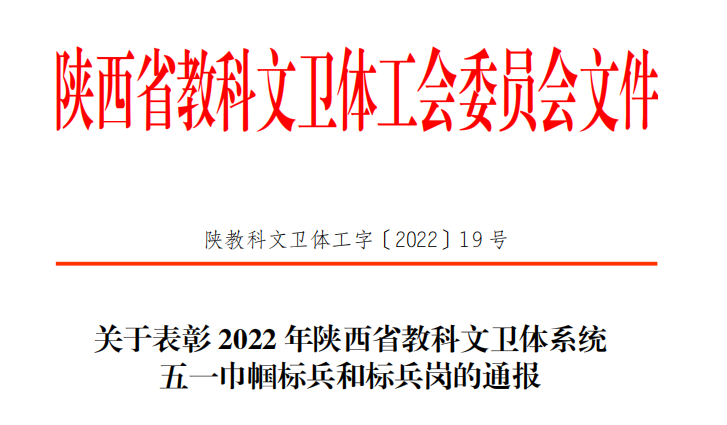 4月26日,陕西省教科文卫体工会下发通知,授予学校建筑工程学院力学与结构教研室2022年度“陕西省教科文卫体系统五一巾帼标兵岗”荣誉称号,授予动物工程学院高睿老师、经济与贸易学院李博老师2022年度“陕西省教科文卫体系统五一巾帼标兵”荣誉称号。希望受到表彰的先进集体和个人珍惜荣誉,再接再厉,继续发挥示范引领作用,不断创造新的成绩、作出新的贡献。