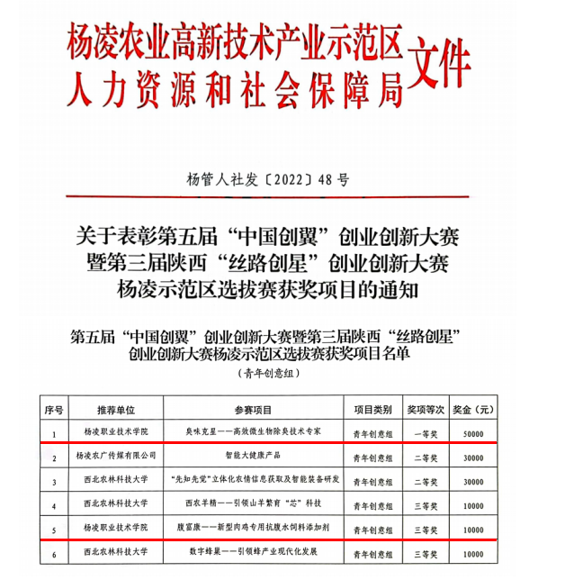5月18日,以“创响新时代 共圆中国梦”“聚丝路英才 创陕西未来”为主题的第五届“中国创翼”创业创新大赛暨第三届陕西“丝路创星”创业创新大赛杨凌示范区选拔赛在农高会D馆举行,我校荣获青年创意组一等奖1项、三等奖1项。