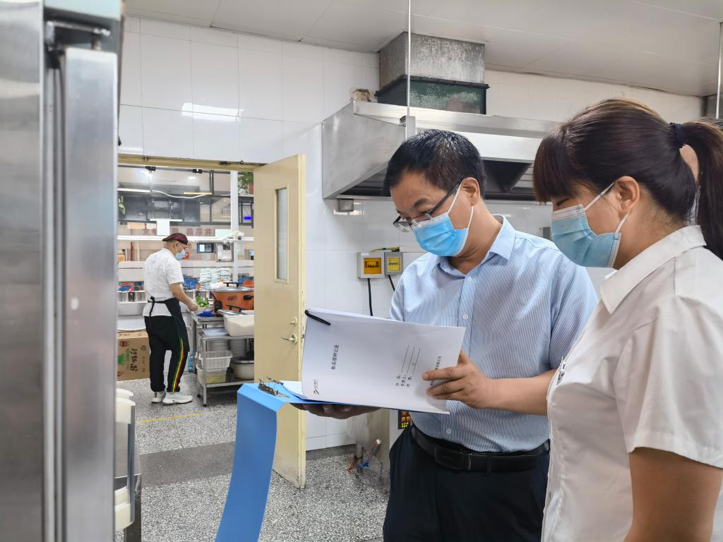 6月7日,学校对三校区食堂的食品安全工作开展专项检查,后勤保障处处长侯煜、副处长郭东平及相关负责人参加检查。