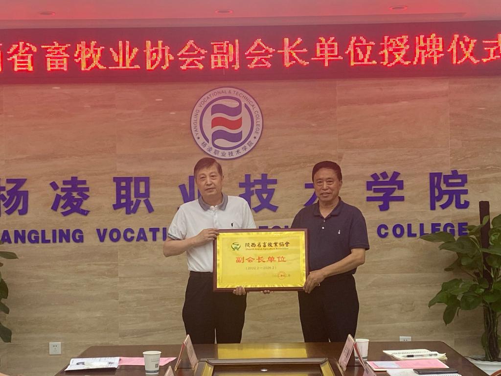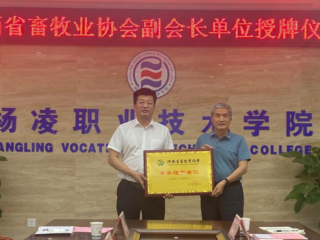 郭庆宏向我校颁发了陕西省畜牧业协会副会长单位、常务理事单位牌匾,他希望杨凌工作站要深化责任、明确方向,积极开展各项工作并取得创新性成果。