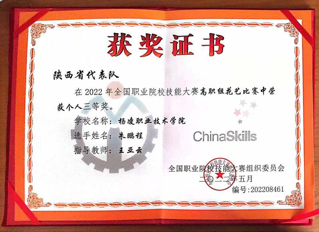 8月23至26日,2022年全国职业院校技能大赛高职组“花艺”赛项在湖北生态工程职业技术学院举行,来自全国28个省、自治区、直辖市的54支代表队参加了比赛。我校生态环境工程学院学生朱鹏程代表陕西省参赛并荣获三等奖。