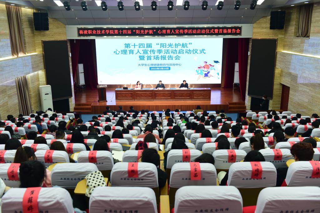 3月23日,学校第十四届“阳光护航”心理育人宣传季启动仪式暨首场报告会在醒钟楼思辨堂举行。副校长张朝晖出席并讲话,党委学工部部长陈军峰,各学院党总支书记、学工办主任、全体辅导员、学生代表共220余人参加了启动仪式,仪式由学工部部长陈军峰主持。