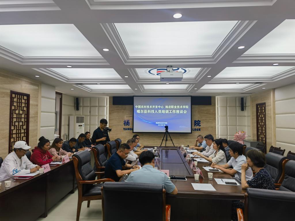 7月13日,科技部中国农村技术开发中心副主任张松梅一行来校调研指导,并与正在我校进行培训的西藏阿里地区噶尔县科技人员素质提升专题培训班的学员进行交流座谈。科技部中国农村技术开发中心副处长朱浩,陕西省委科技工委委员、省科学技术厅二级巡视员郭杰,省科学技术厅农村科技处处长王云岗、副处长郑永岗,陕西省农村技术开发中心副主任刘进,杨凌示范区党工委委员、管委会副主任马江涛,示范区科技创新局局长赫思远、副局长唐伟陪同座谈。副校长胡俊鹏,继续教育与培训学院负责人黄璞参加座谈。