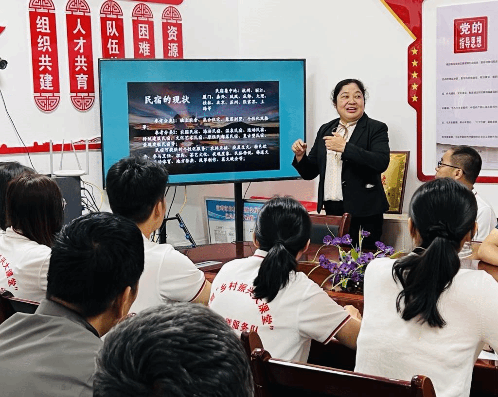 ——举办一场产业培训,助力产业振兴。旅游与管理学院副教授樊雅琴、李静针对高码头村“乡村+旅游”、“生态+旅游”产业发展需求,依据高码头资源现状,面向高码头党支部班子成员、合作社经营代表与村民代表分别就民宿发展规划与第三产业接待服务开展两场产业培训,为高码头村进一步扩大游客承载接待量助力增智。