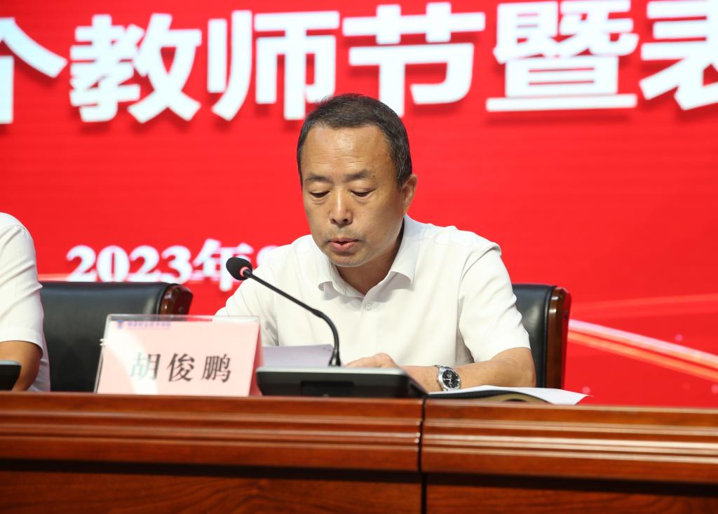 大会宣读了学校《关于颁发“光荣从教30年”纪念章及荣誉证书的决定》《关于对2021年以来成绩突出团队和个人表扬的决定》和《关于表彰2023年优秀教师优秀教育工作者的决定》,并为5名从教30年教师代表颁发了荣誉证书及纪念奖章,为优秀教师和优秀教育工作者代表颁发了荣誉证书。会上,优秀教师代表张宏、优秀教育工作者代表郭婷、成绩突出团队和个人代表李龙作了交流发言。