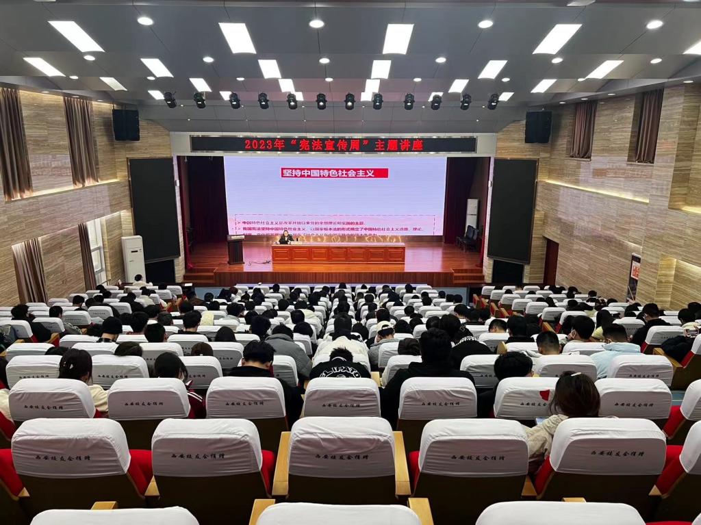12月4日下午,在第十个“国家宪法日”来临之际,由党委学工部和马克思主义学院联合主办的2023年“宪法宣传周”首场专题讲座在南校区思辨堂举行。会议宣读了“宪法宣传周”活动实施方案,举行了首场专题讲座。