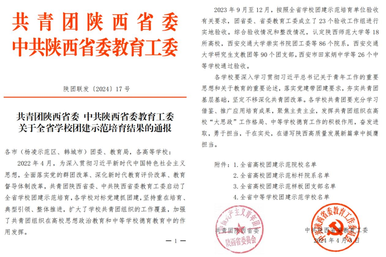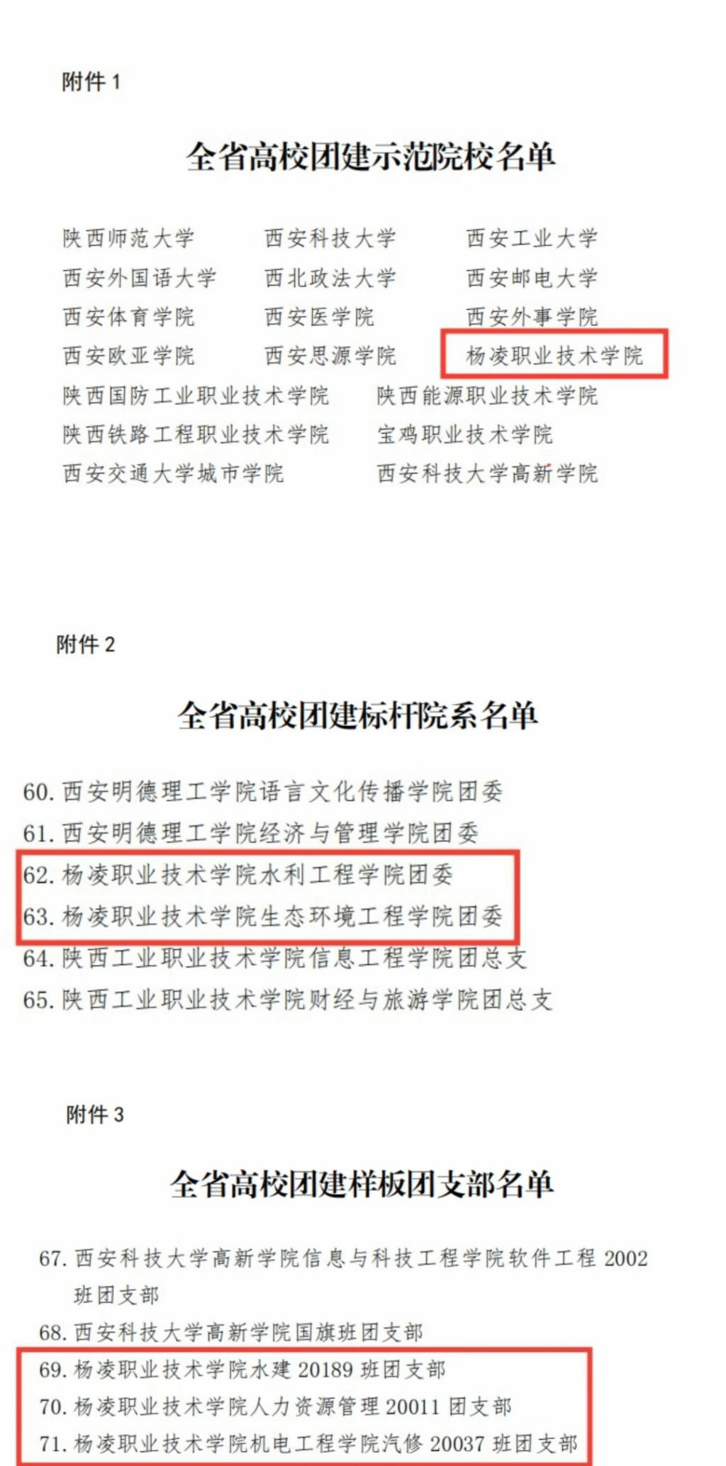 近日,团省委、省委教育工委通报了全省学校团建示范培育结果,我校获评全省高校团建示范院校,水利工程学院团委、生态环境工程学院团委获评全省高校团建标杆院系,水建20189班团支部、人力资源管理20011团支部、汽修20037班团支部获评全省高校团建样板团支部。