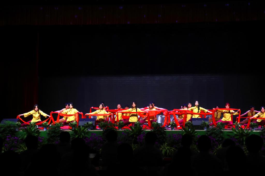 表彰结束后,由校大学生艺术团和11个二级学院选送的文艺汇演节目轮番登台。充满动感、青春活力的舞蹈《一起向未来》点燃全场,古典舞《清风徐来》、情景朗诵《青年志》、歌曲《不忘初心》等10余个节目精彩纷呈,为现场师生带来了一场视听盛宴,赢得了阵阵掌声。