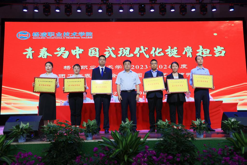 会议宣读了《共青团杨凌职业技术学院委员会关于表彰2022-2023学年度先进集体及先进个人的决定》,学校领导为五四红旗团委、五四红旗团支部、优秀共青团干部、优秀共青团员等先进集体和个人颁发奖章,30名新发展团员代表进行了入团宣誓仪式。刘瑞明指出,要学习宣传贯彻习近平总书记重要寄语精神,准确理解和把握六个深刻领会;要努力做德智体美劳全面发展的社会主义建设者和接班人;要持续提升各级团组织的引领力、组织力、服务力,团结带领广大青年成人成长成才。