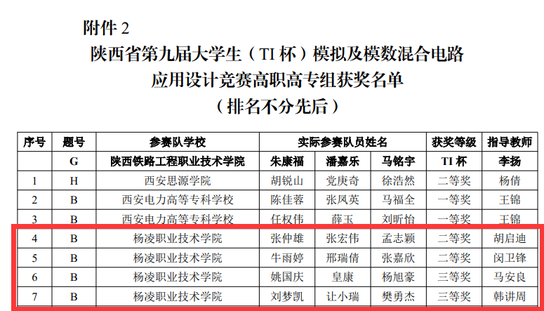 9月19日,由陕西省教育厅主办、西安电子科技大学承办的第九届大学生(TI杯)模拟及模数混合电路应用设计竞赛省赛结果公布。经激烈角逐、组委会评议,我校由信息工程学院胡启迪、闵卫锋、马安良、韩讲周等4位教师指导的四支参赛队伍,从来自全省60所高校中的1024支队伍中脱颖而出,荣获陕西省二等奖2项、三等奖2项。