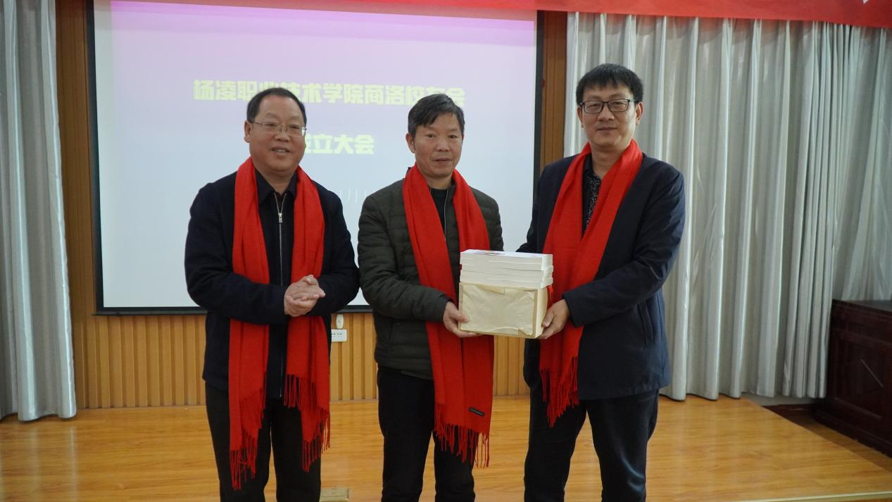 蒋平江向校友会授牌,宣告杨凌职业技术学院商洛校友会成立。西安交大校友会代表、商州区文旅局副局长张晓平致贺词。崔学民、闵朋利、张军利向学校赠送了书画作品。学校和商洛校友会分别向商州区图书馆捐赠图书100余册。王周锁表示,学校为商洛地区尤其是涉农领域培养了大批优秀人才,希望商洛校友会发挥好桥梁纽带作用,带动各行业校友为学校和商洛发展再建新功。