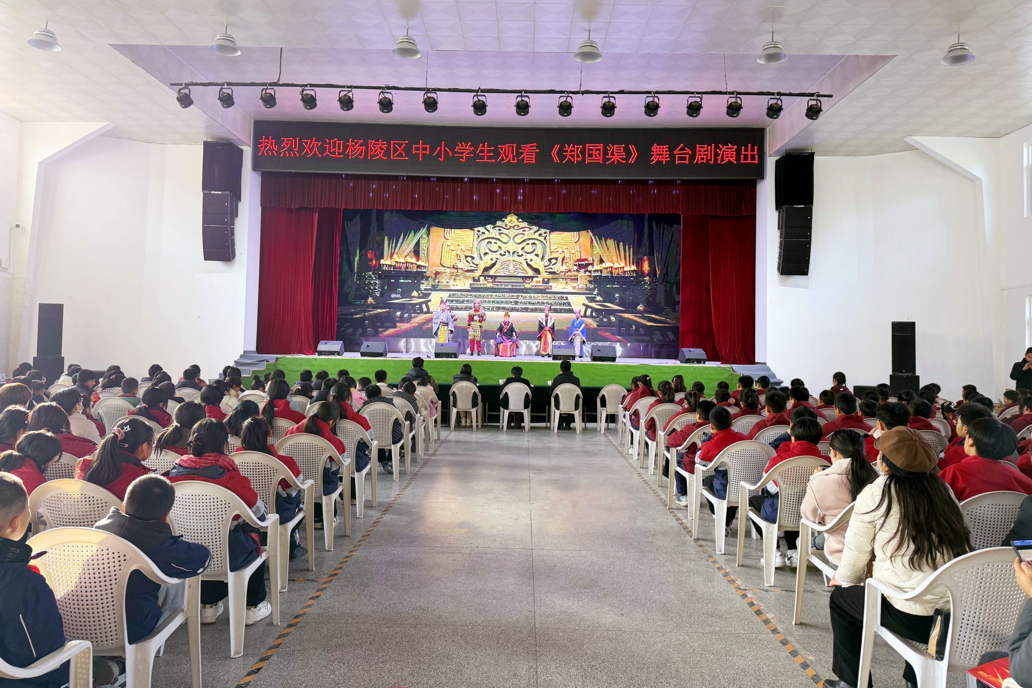 为弘扬中华优秀传统文化,加强大中小学思想政治教育一体化工作,12月13日下午,杨陵区教育局组织杨陵区中小学生来我校集体观看原创舞台剧《郑国渠》。杨陵区教育局局长王珺、副局长秦莉菲,我校马克思主义学院负责人,以及来自杨陵区第一实验学校、张家岗小学、杨陵小学、高新第三小学、职教中心、邰城实验学校、高新初级中学等450余名中小学师生共同观看了演出。