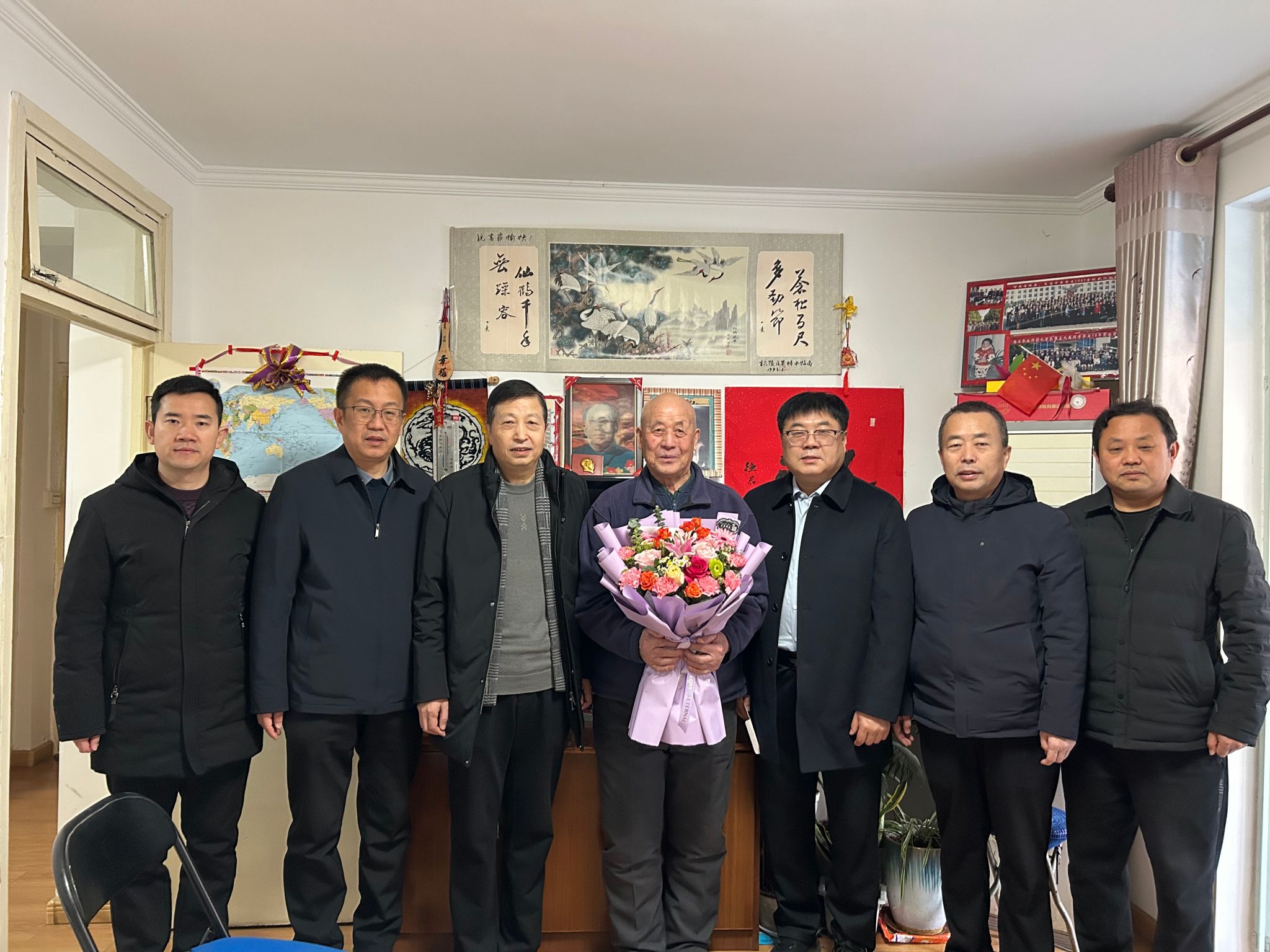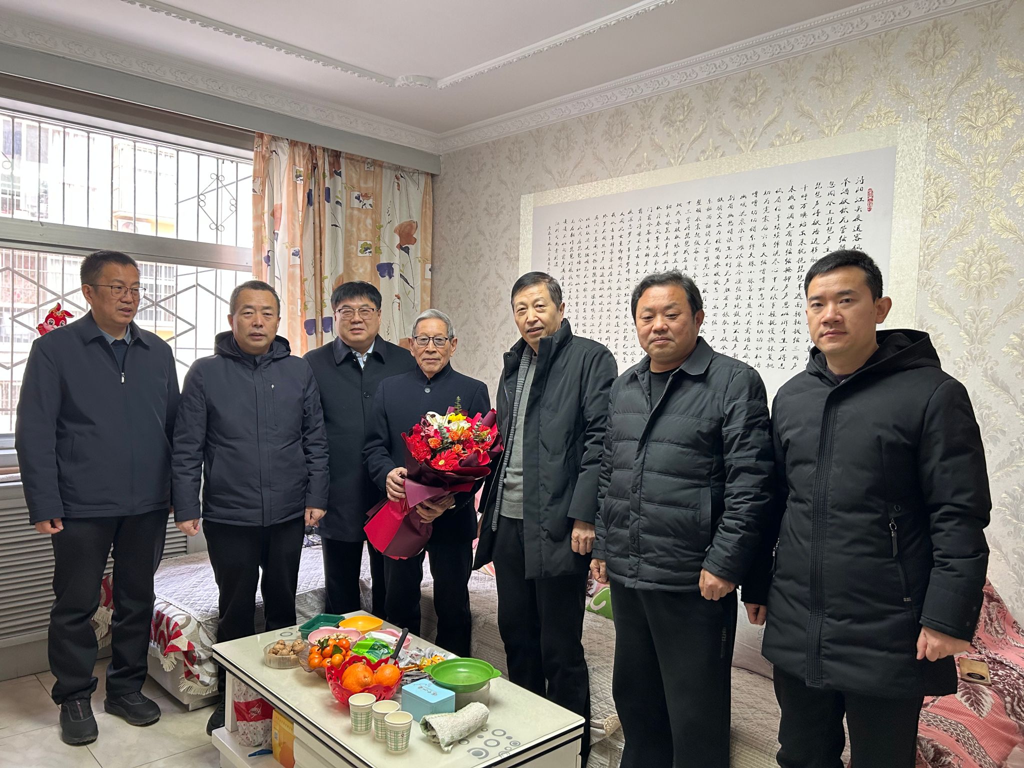 在老同志家里,校领导与离退休老同志亲切交谈、嘘寒问暖,关切地询问他们的身体情况、生活近况和家庭情况,认真听取了他们对学校发展的意见建议,高度评价了老一辈教育工作者为学校教育事业发展所做出的卓越贡献,表示正是有了他们的辛勤耕耘与无私奉献,才奠定了学校坚实的发展基础,成就了今日的辉煌成就,希望离退休老同志保重身体,继续关心和支持学校的改革与发展,为学校的美好未来建言献策。强调要一如既往地做好离退休老同志的服务保障工作,在政治上多关心,思想上多沟通,生活上多关照,精神上多关怀;要发挥好老同志的政治优势、经验优势和威望优势,助力学校事业高质量发展;要不折不扣的落实好老同志的各项福利待遇,让他们心情舒畅地安享晚年、颐养天年。