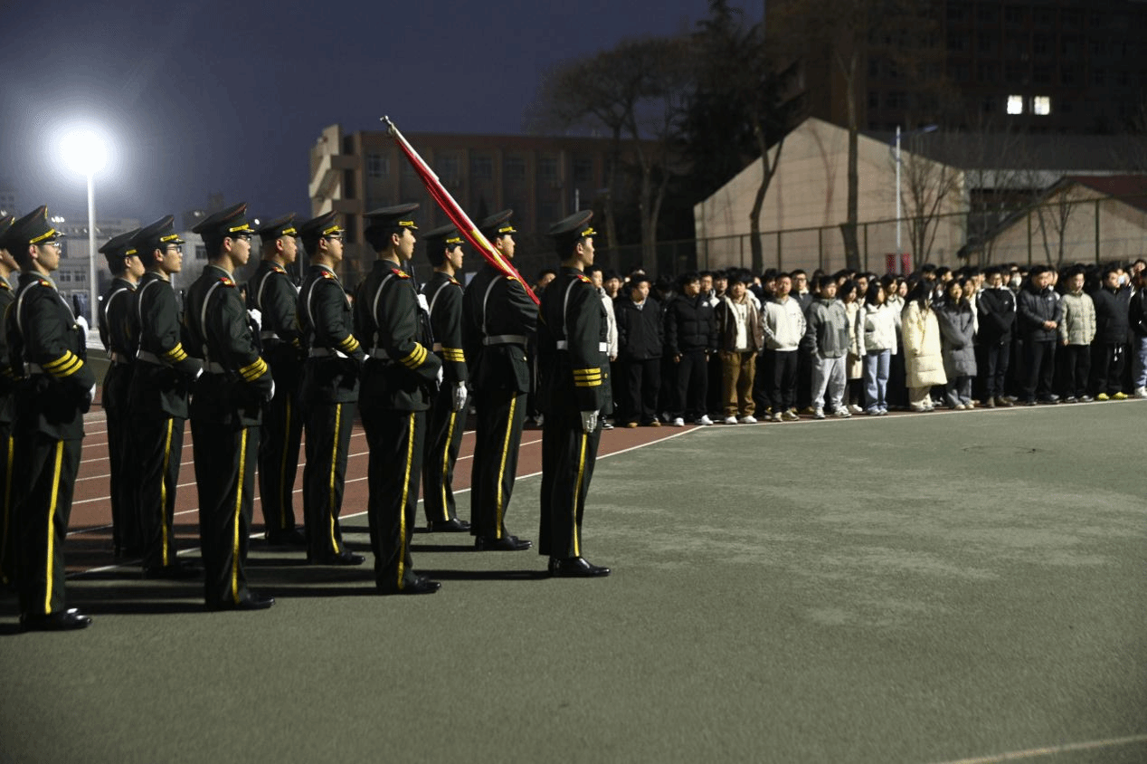 7点整,所有人员集合完毕。国护队员们身着整齐制服,迈着铿锵有力的步伐,缓缓走向升旗台。在激昂的国歌声中,五星红旗冉冉升起,现场师生庄严肃立,向国旗行注目礼。