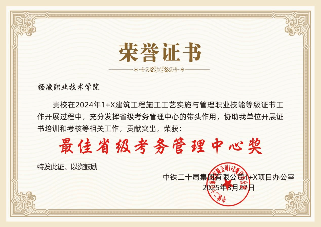 近日,1+X建筑工程施工工艺实施与管理职业技能等级证书2024年度总结表彰会在线上召开,会议公布了优秀试点院校名单,学校获2024年度最佳试点院校奖和最佳省级考务管理中心奖。