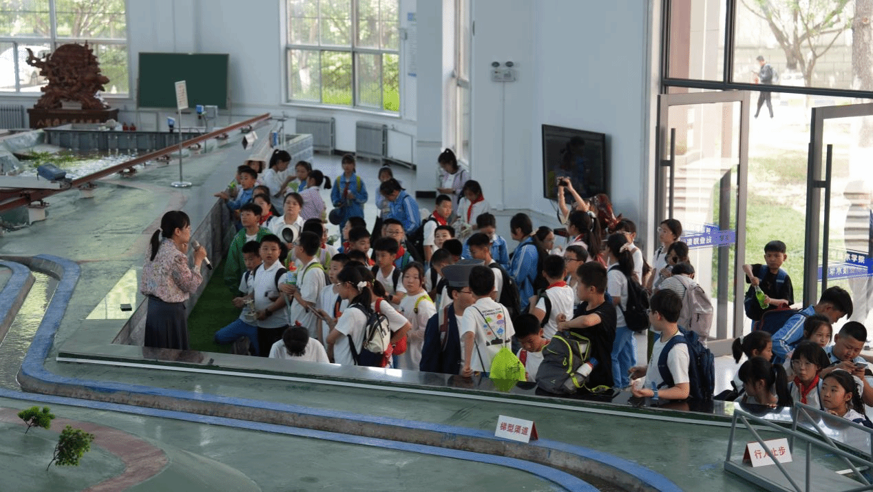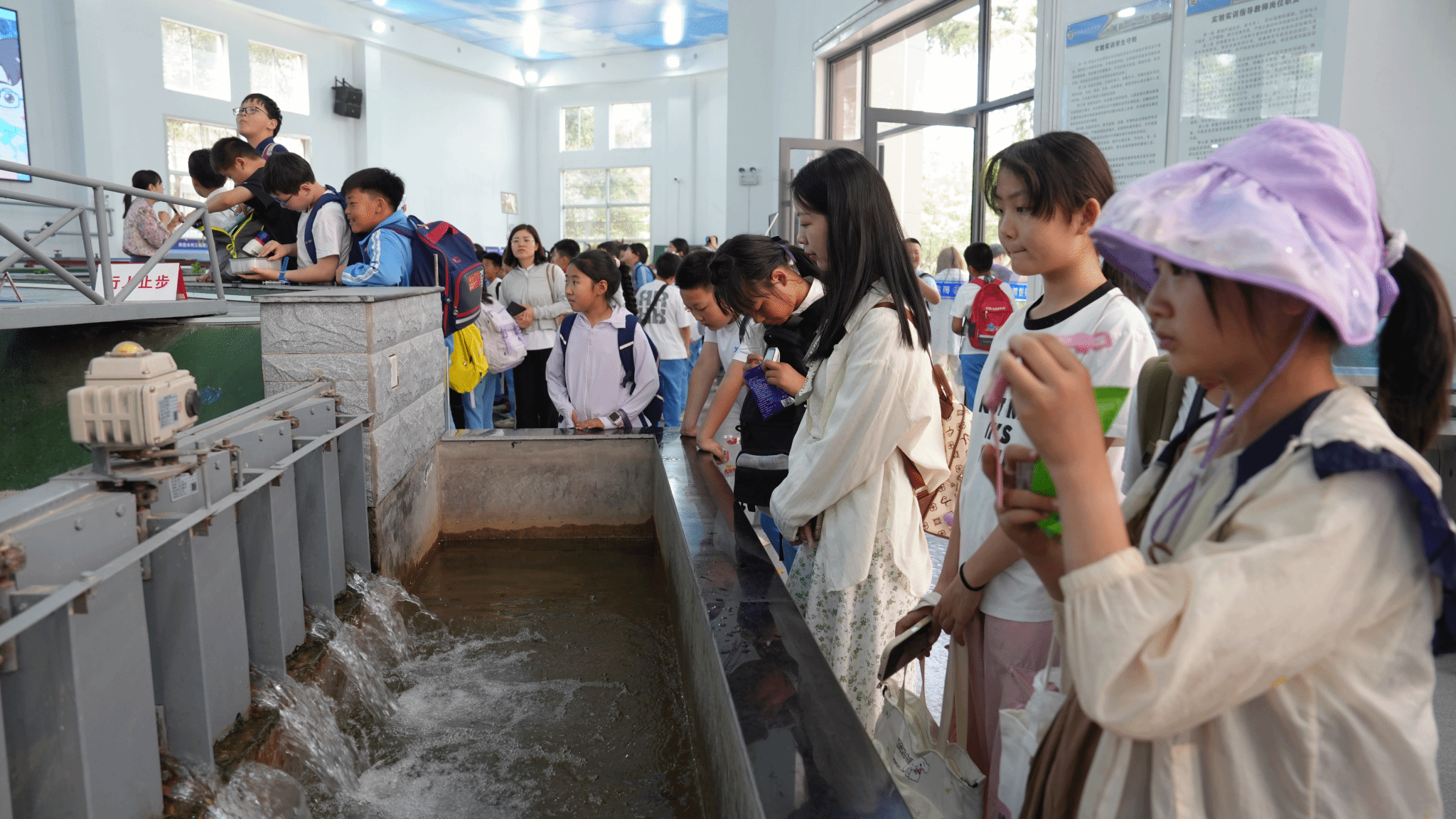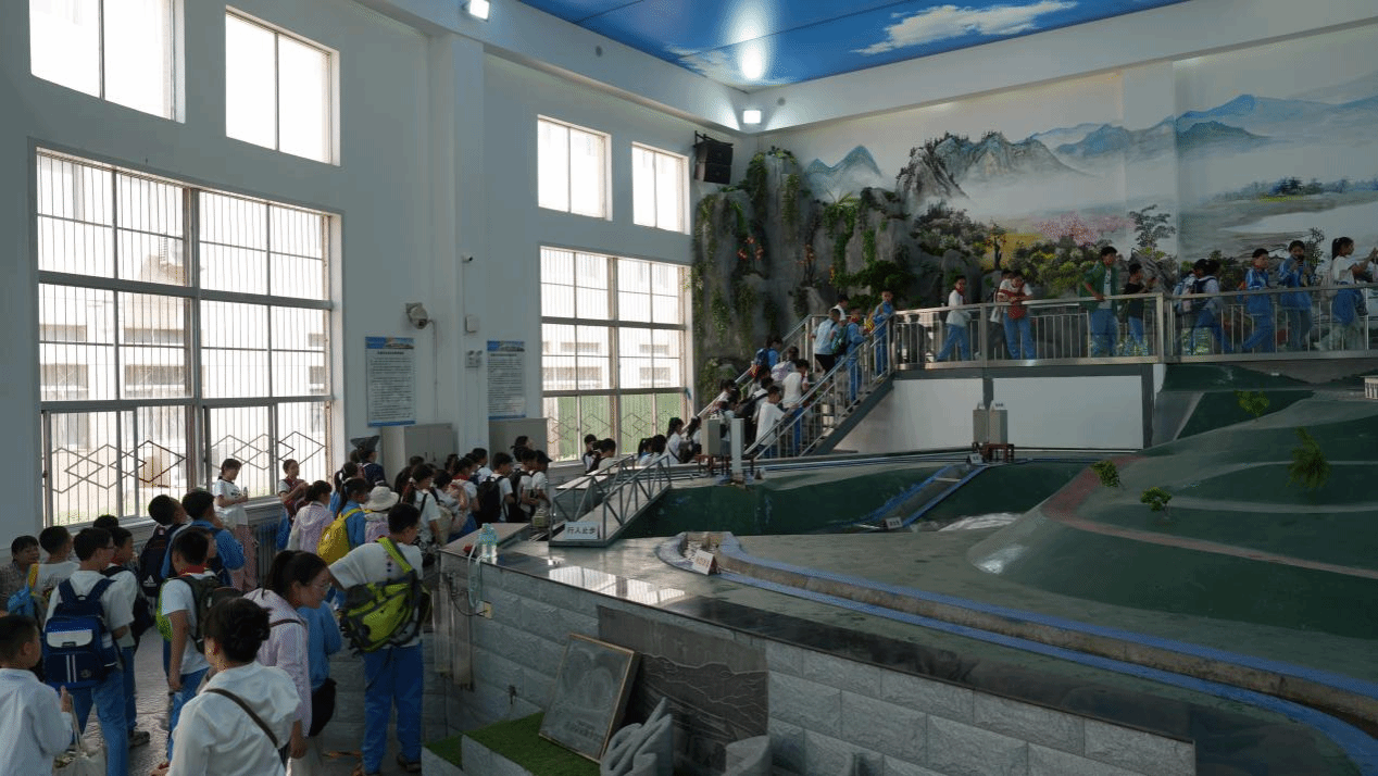 在水工大厅,水利工程学院老师借助动态水利模型,将抽象知识具象化。循环水系统装置前,学生们专注观察模拟水流,感悟“水利工程守护万家灯火”的深刻涵义。