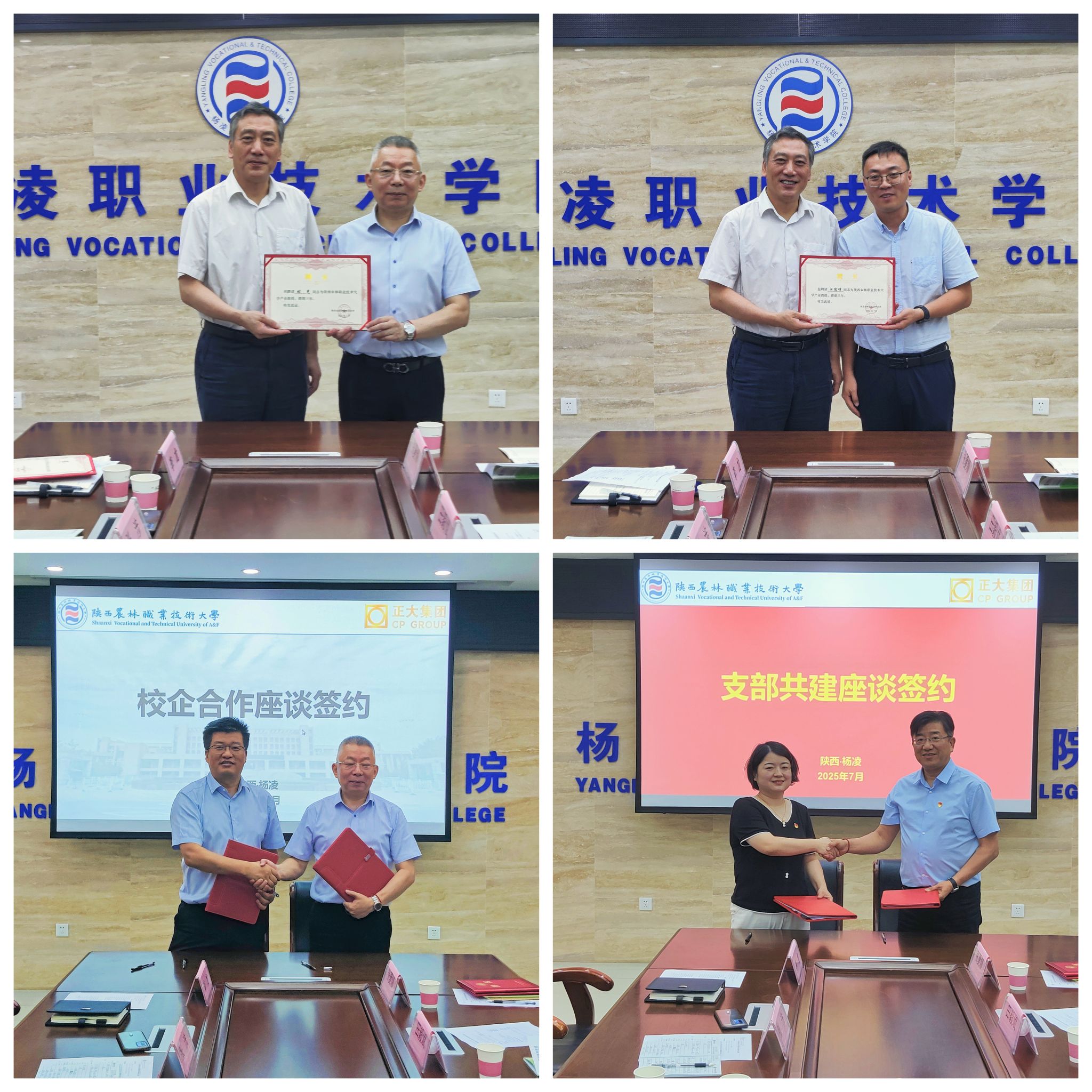 中共陕西正大食品有限公司支部委员会支部书记田毅斌、陕西区人力资源总监吴晓炜、人力资源线雇主品牌总监张夏娜,我校动物工程学院负责人、动物医学党支部书记、陕西正大奶山羊产业发展有限公司外聘兽医技术顾问参加。