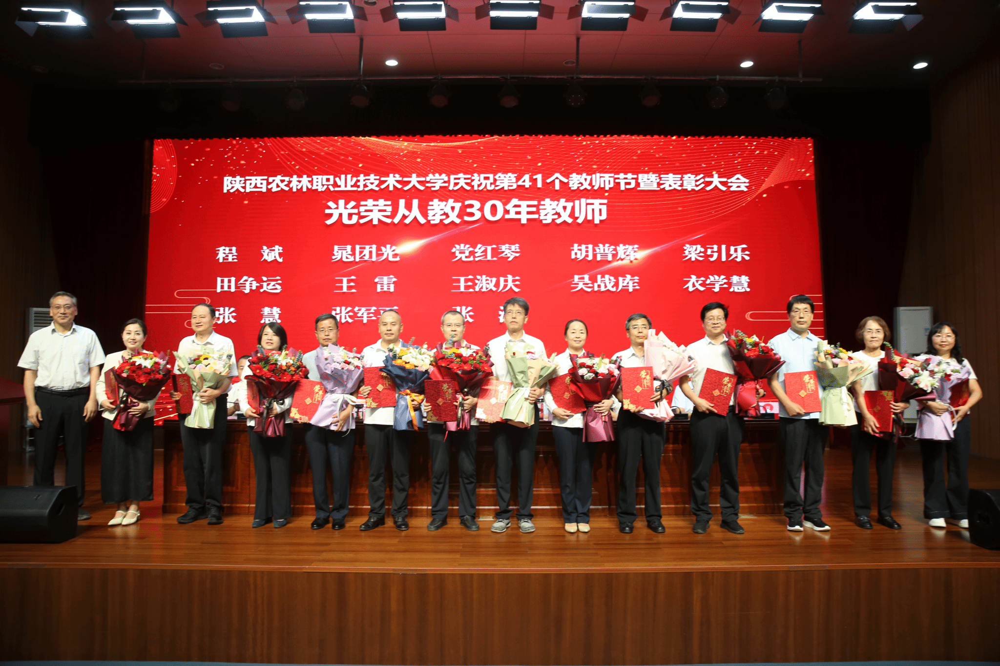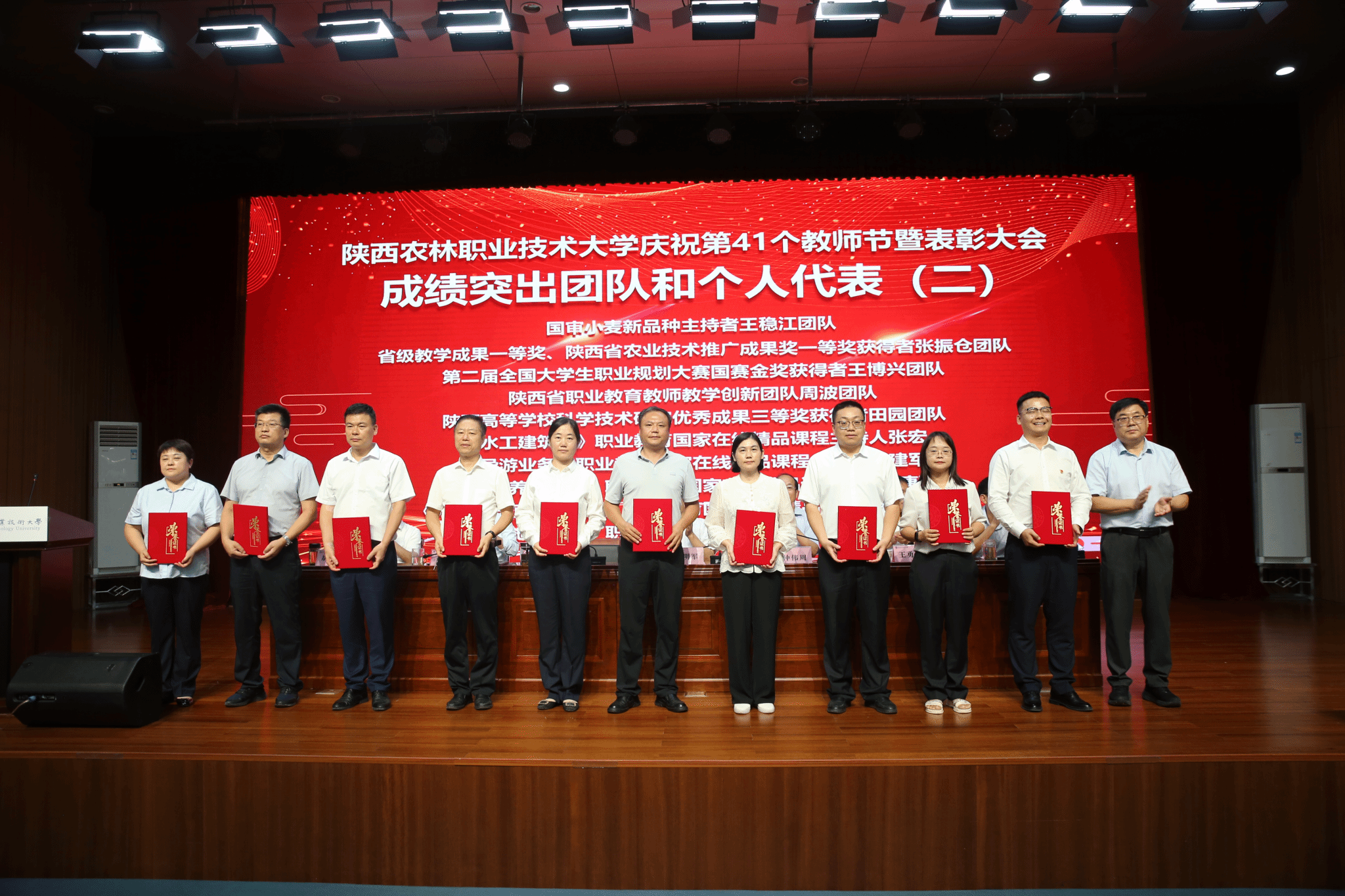 韩明军在讲话中向全体教职工致以诚挚的问候,向受表彰的教师表示热烈的祝贺,向所有爱国奉献、追求卓越的教职工表示衷心的感谢,向所有努力付出、辛勤工作的教职工致以最崇高的敬意。他要求,要大力弘扬践行教育家精神,树立“躬耕教坛、强国有我、兴校有我”的志向和抱负,努力做新时代德才兼备的“大先生”;要着力健全教师职业发展体系,切实树立教师第一资源、教师优先发展理念,全方位支持教师职业发展,让每一位教师力争都能成为本行业本领域的“大师”;要努力营造尊师重教的浓厚氛围,公开、公正、公平,把尊师重教落实在事关教师切实利益的工作实际中,积极主动为职工办实事,引导带领广大教职工把精力专注于教育教学工作上,体现在实实在在的业务成绩上。他希望,全体教职工要不负青春、不负韶华,不负党和人民的期盼,努力建设中国特色世界一流职业大学,续写学校事业发展的新篇章,在以中国式现代化全面推进强国建设、民族复兴伟业中贡献陕农力量。