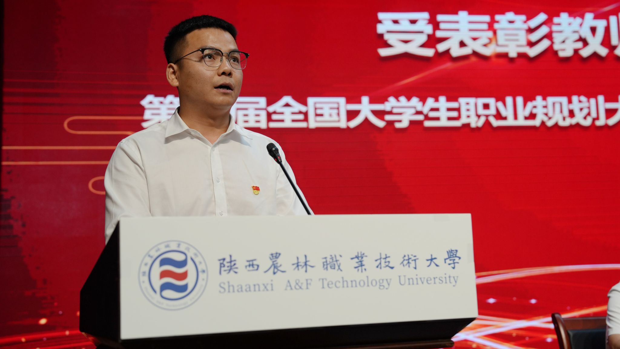教师代表、2024年度陕西高校优秀青年人才支持计划获得者李婷婷、第二届全国大学生职业规划大赛国赛金奖指导教师王博兴、2025年学校“金教师”教学能手王法景分别作了交流发言。