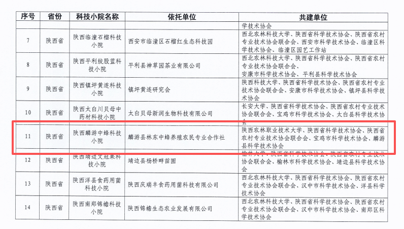 近日,中国农村专业技术协会对设立中国农村专业技术协会科技小院进行了批复,由我校牵头建设、麟游县林东中蜂养殖农民专业合作社依托建设的陕西麟游中蜂科技小院成功入选,成为麟游县中蜂产业发展的国家级科技服务平台。