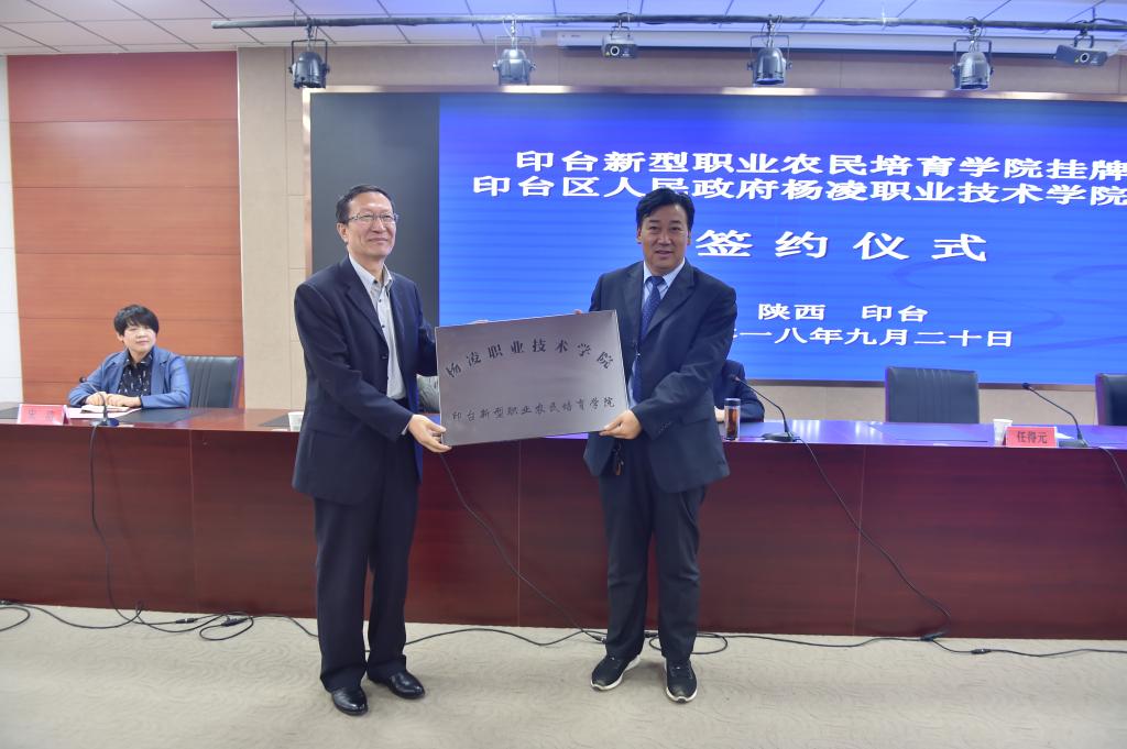 9月20日,我院铜川印台区新型职业农民培育学院挂牌暨校地合作协议签约仪式在铜川印台区职业技术学校举行。学院党委副书记任得元出席签约仪式,并代表学院向印台区职业技术学校授牌。签约仪式由印台区委副书记马海峰主持。
