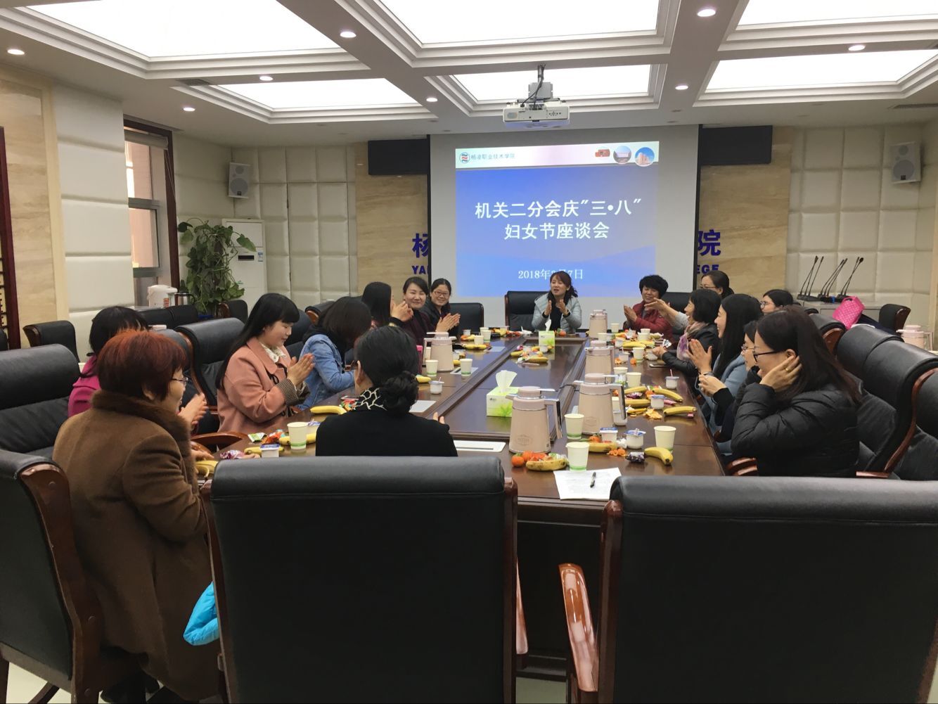 3月7日下午,机关二分会在醒钟楼204会议室召开庆“三·八”妇女节”座谈会。院工会副主席、机关二分会主席、各部门负责人、工会委员、全体女教职工参加了座谈会。