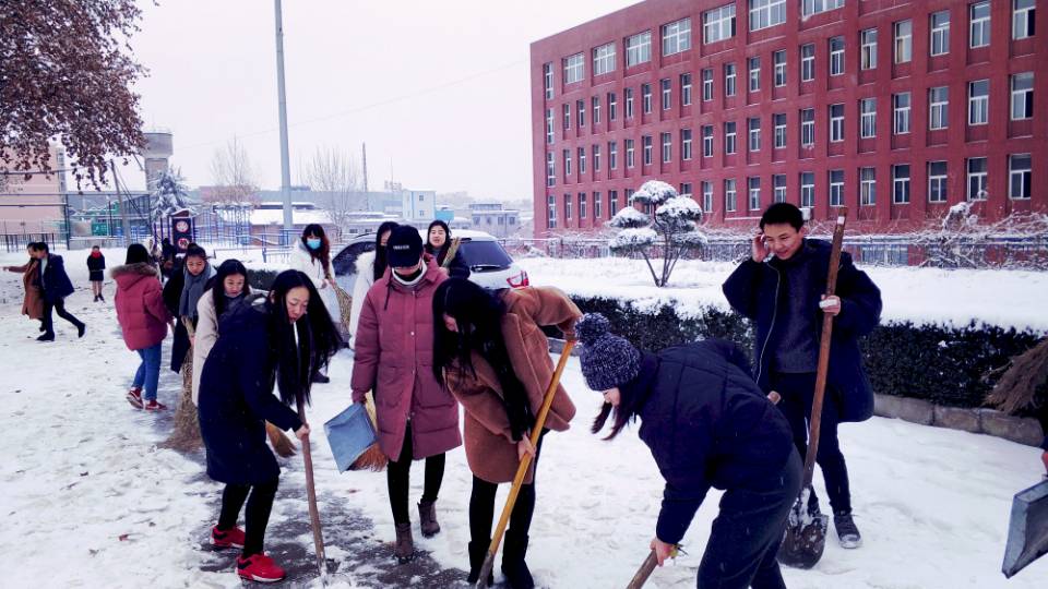 1月4日,杨凌迎来了入冬以来的第一场雪,大雪为校园带来美景的同时也为大家出行带来了不便,为尽快消除积雪给学校师生带来的不便,旅游与管理分院党总支组织开展了冬日除雪活动,对北校区校园内主干道上的积雪进行了清理。该分院教职工党员、学生党员、团学干部约30余人参与了除雪活动。