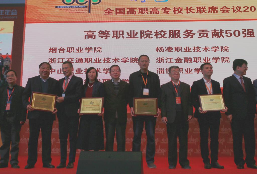 我院被评为高等职业院校服务贡献50强,院长王周锁上台领奖
