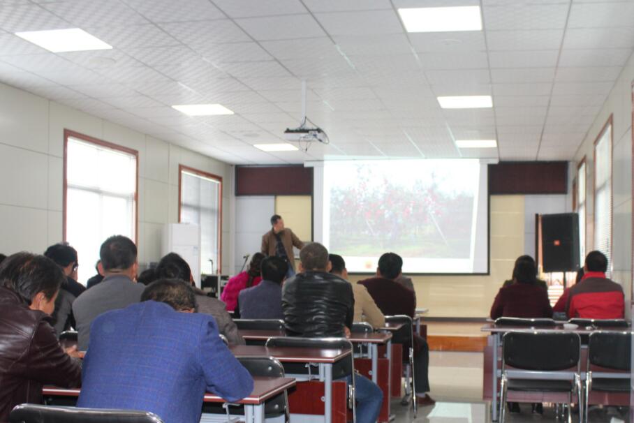 随后,我院生物工程分院教授马志峰为旬邑县职业农民培育学院的学员进行了以“苹果生产经营的基本思路”为主要内容的培训讲座。