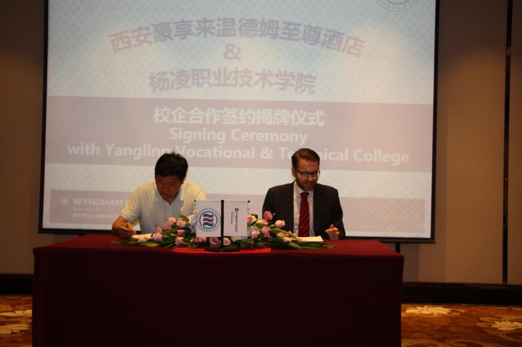 温德姆酒店集团是全球规模最大、业务最多元化的酒店集团企业,总部设于美国新泽西州帕西帕尼,目前在六大洲68个国家经营15个品牌近7440家酒店,拥有638300多间客房。西安温德姆至尊酒店是该集团旗下经营的品牌中最高档奢华的品牌,连续多年被评为消费者最喜爱的中国十佳酒店。此次校企合作协议的正式签订暨温德姆酒店管理学院的建立使双方的合作关系迈向了一个新台阶,将对双方事业的共同发展产业深远的影响,必将发挥各自优势、资源共享,在人才培养、员工培训、就业辅导、实习就业等方面开展更深入的合作,培养更多更强的酒店服务与管理专业技术人才。