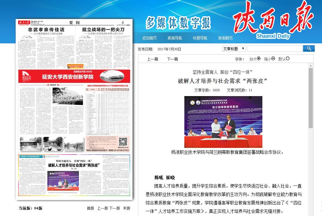 提高人才培养质量,提升学生综合素质,使学生尽快适应社会、融入社会,一直是杨凌职业技术学院全面深化教育教学改革的主攻方向。为彻底破解专业能力教育与综合素质教育“两张皮”现象,学院遵循高等职业教育发展规律创新出台了《“四位一体”人才培养工作实施方案》,真正实现人才培养与社会需求无缝对接。