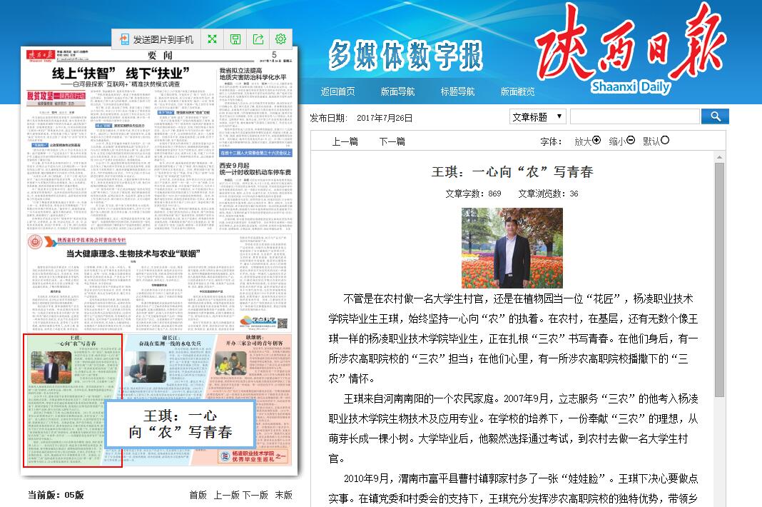 不管是在农村做一名大学生村官,还是在植物园当一位“花匠”,杨凌职业技术学院毕业生王琪,始终坚持一心向“农”的执着。在农村,在基层,还有无数个像王琪一样的杨凌职业技术学院毕业生,正在扎根“三农”书写青春。在他们身后,有一所涉农高职院校的“三农”担当;在他们心里,有一所涉农高职院校播撒下的“三农”情怀。