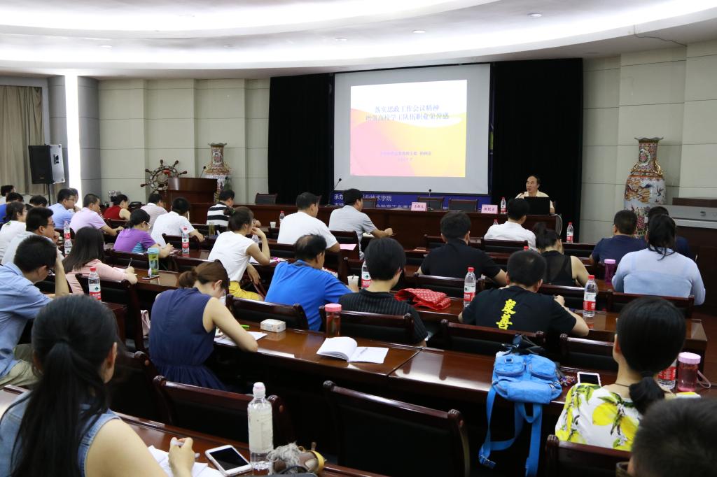 7月23日,省高教工委学工部部长田民正来我院,为全体学生工作人员作题为《落实思政工作会议精神,增强学工队伍职业荣誉感》的报告。田民正传达了省高校思想政治工作会议精神,从做好学生思政工作的政治要求、学生思政工作以学生为主体的要求、学生思政工作改革创新的要求三个方面,深入学习习近平总书记关于高校思想政治工作重要讲话。他结合高校学生思政工作的典型案例,要求辅导员要有政治意识、大局意识,在工作中要围绕学生、关照学生、服务学生,为学生点亮理想的灯,照亮前行的路;要沿用好办法、改进老办法、探索新办法,因事而化、因时而进、因势而新,把握学生思想动态和学生教育的规律性,增强时代性、体现时代新要求,把思政工作落实到学生事务的具体过程,培养德才兼备、全面发展的人才。我院二级分院党总支书记、学工部及团委全体人员、全体辅导员参加了此次报告会。