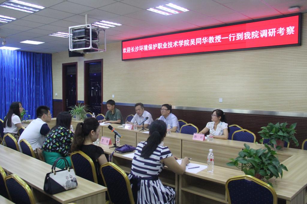 7月11日上午,由长沙环境保护职业技术学院环境工程系和陕西碧诺环保科技有限公司组成的调研组一行4人到我院进行调研考察。双方就国家职业教育环境工程技术专业人才培养模式、专业建设与改革、课程体系、实践教学条件建设、教学团队建设、校企合作等进行了深度交流,并就教育部高等职业教育环境工程技术专业标准的制定进行了研讨,取得了广泛的共识。双方期待两校以后在专业建设、人才培养模式改革、教学团队建设等方面加强交流与合作,促进双方环保专业群的共同发展。