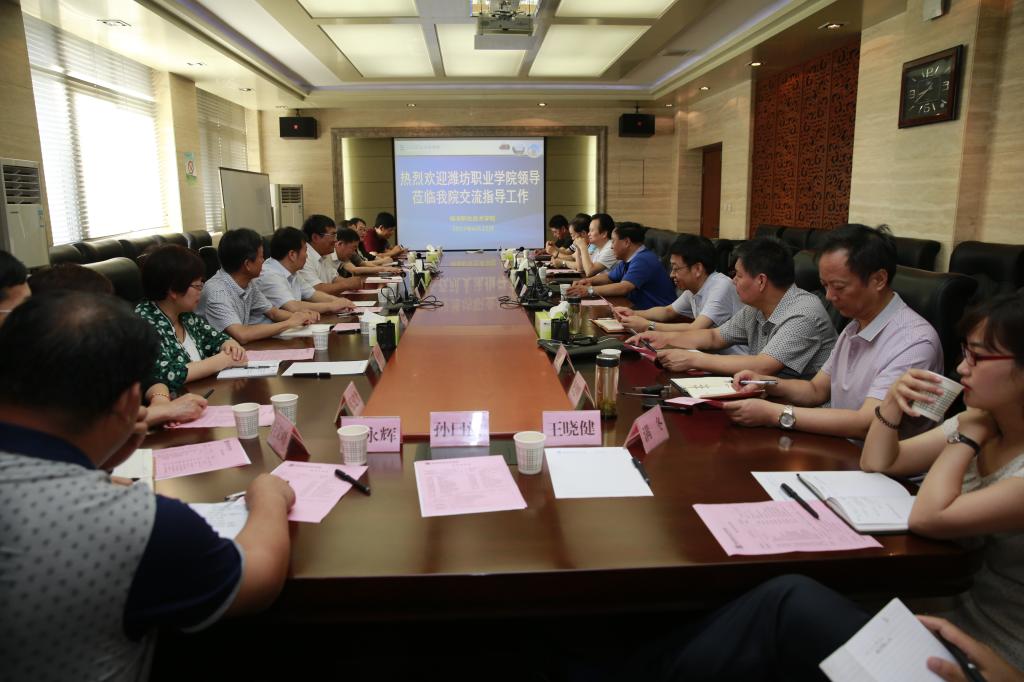 6月22日,潍坊职业学院院长王家爱、党委副书记宋桂言等一行15人来我院考察交流。院长王周锁、副院长张永良会见了来访客人,人事教师处、教务处、信息工程分院、生态环境工程分院、经济与贸易分院、机电工程分院、生物工程分院等相关部门负责人参加座谈会。 潍坊职业学院根据山东省优质高职院校建设需要,选取了我院作为学习标杆院校,这次考察交流主要针对专业建设、师资队伍、产学研结合与社会服务、信息化教学和校园文化建设展开。 为增强两校间交流合作,本着“优势互补、友好合作、互利共赢、共同发展”的原则,杨凌职业技术学院与潍坊职业学院经协商缔结为友好学校,签订了《友好学校协议》,双方表示,今后将进一步加强彼此校际交往,增进了解、互相学习,在办学理念、人才培养、教学改革、专业建设等诸多方面展开广泛交流与合作,共谋高职院校发展大计,谱写新的辉煌篇章。