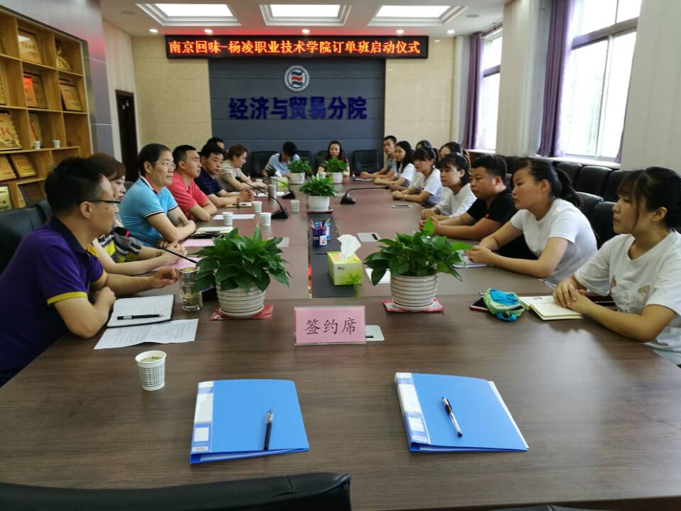 为了推进校企深度合作,深化教育教学改革,体现校企协同育人,产教融合, 6月21日上午,经贸分院与南京佳润餐饮连锁有限公司在经贸分院举行了“南京回味-杨凌职业技术学院订单班”启动仪式。