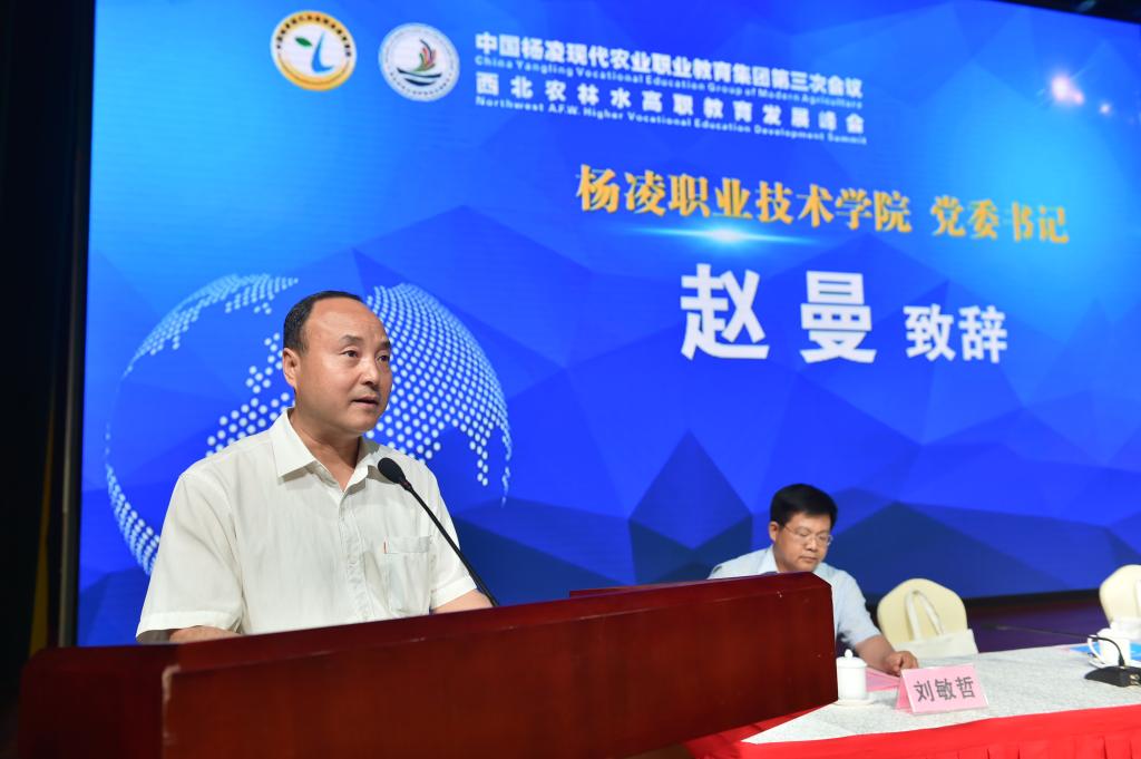 赵曼在致辞中表示,党中央提出“四个全面”战略布局和“五大发展理念”,这对农林水高职教育提出了新的要求和期望。杨凌职业技术学院将以中国杨凌现代农业职业教育集团和西北农林水高职教育发展峰会为平台,加强在创新人才培养、发展校政企行合作、服务“一带一路”、助力精准扶贫方面的交流协作,优势互补共生,促进职业教育与经济社会大开发、大发展;充分发挥自身优势,推广本土探索的改革创新经验和成果,或者合作、联合攻关共同难题,提升改革创新的质量和效率;深化高职教育标准、机制的共同建设,探索资源盘活存量、用好增量,优化结构、提高效益的合作共享,在师资互用、专业互补、学分互认、科研组团等方面取得突破,延长集团内人才链、产业链、信息链,与集团成员携手为促进现代农业发展作出新贡献。