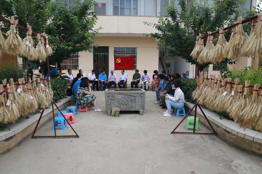 在赵瑜小麦研究所的院子里,董小龙、王周锁和大家一起,挨着赵瑜的小麦标本露天而坐,听著名小麦育种专家赵瑜讲述自己的“种子梦”。赵瑜对大家的到来表示欢迎。他说,大家能够来到生产科研第一线开展这次活动,下基层、接地气,对我来说也是一种激励,体现了省委高教工委的领导和各位老师对我的重视。在讲述自己的“种子梦”时,赵瑜从自己小时候就热爱田野说起,一直到高中、大学、回陕,向大家讲述了他的“种子梦”形成、追求、实现之路。随后又介绍了他在2011年以后培育的三个小麦新品种。