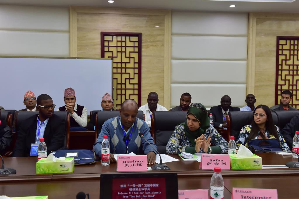 来自埃塞俄比亚畜牧渔业部的专家贝尔汉先生代表全体学员发言。他对我院热情友好的接待表示感谢,并表示将珍惜此次难得的学习机会,认真学习中国在农业生产领域的先进技术和先进理念,通过此次培训,架起中国和发展中国家的友谊之桥。
