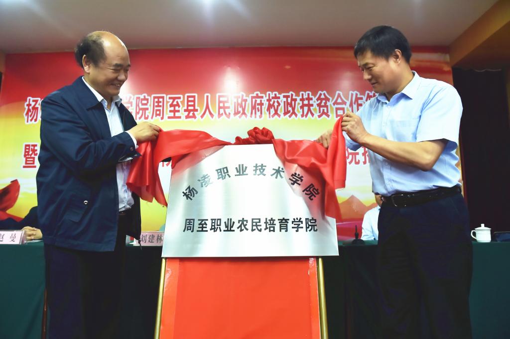 我院与周至县人民政府校政扶贫合作签字仪式暨周至职业农民培育学院揭牌仪式