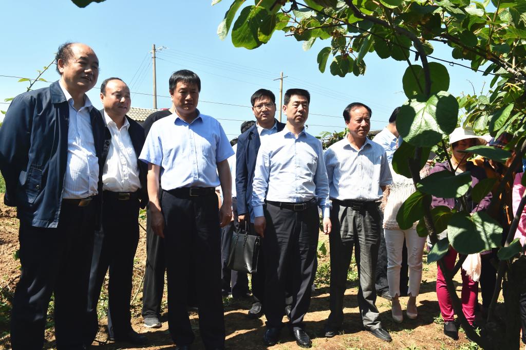 出席活动的领导视察周至县猕猴桃科技培训班室外教学情况