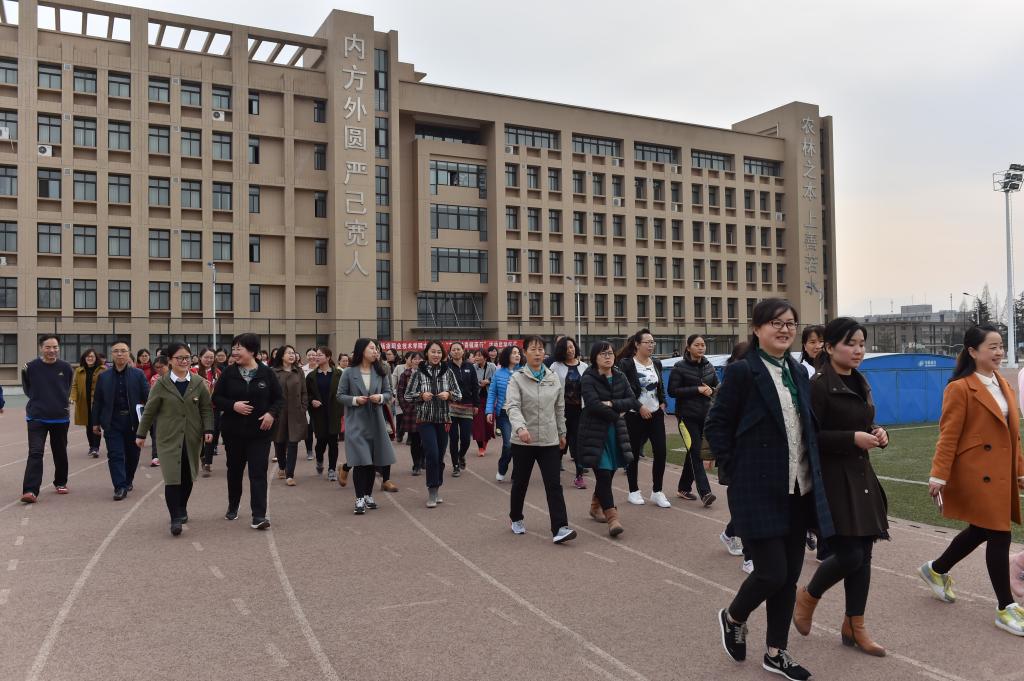 阳春三月,柳丝依依,春回大地,万物复苏。在第107个“三八”国际劳动妇女节来临之际,为进一步丰富我院女教职工业余文化生活,倡导科学、健康的生活方式, 3月6日下午,院工会在南校区操场组织了女教职工“节庆踏春健康行”活动。党委副书记任得元出席启动仪式,院工会主席、副主席,各基层分会主席及全体女教职工共 400余人参加了本次活动。