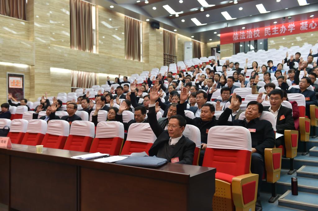 下午16:00,王周锁主持召开了闭幕式。闭幕式上,与会代表听取了选举结果、当选人名单,并采用举手表决方式对学院工作报告、学院2016年财务预算执行情况及2017年财务预算(草案)报告、绩效工资分配办法等进行表决,获得全票通过。