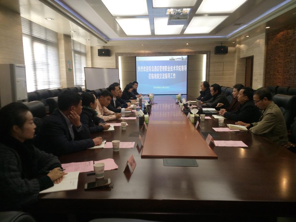 11月15日,青岛酒店管理职业技术学院王建宝副院长一行 10人来院访问交流。我院副院长张迪在醒钟楼A208会议室热情会见了客人并举行座谈。学生处、团委、书画艺术中心,信息工程分院,旅游与管理分院等相关部门负责人参加座谈会。